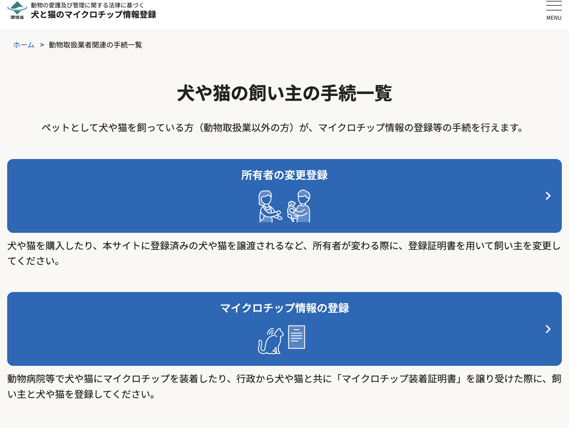 手続きはオンラインで完結するケースが多いです。基本的にはマイクロチップ情報登録にて変更できるでしょう。