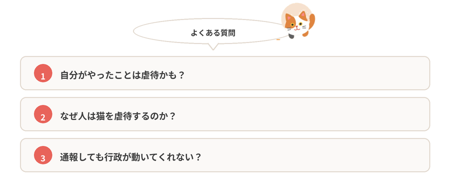 ここでは、猫の虐待に関してよくある質問に回答します。