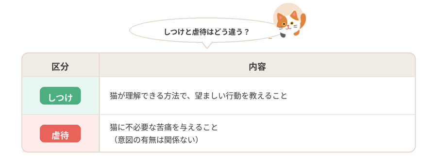 一方で、猫が理解できる方法で何かを教える、少しの間留守番を頼むといった程度では、法的には虐待には該当しません。