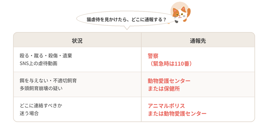 猫の虐待は、発見した人が正しい行動をとることで防げる問題です。ぜひ今回の内容を参考に、まず通報先や相談窓口を確認してみてください。